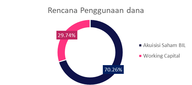 - Sebesar Rp215.000.000.000,- (dua ratus lima belas miliar Rupiah) akan digunakan Perseroan untuk mengambilalih saham BIL (“Rencana Transaksi”) sebanyak 191.250 (seratus sembilan puluh satu ribu dua ratus lima puluh) lembar saham atau setara dengan 99,99% (sembilan puluh sembilan koma sembilan sembilan persen) dari seluruh modal ditempatkan dan disetor penuh BIL dari BNL.